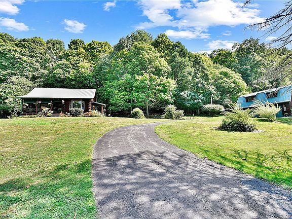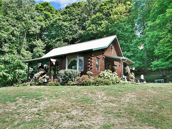 Own a Stunning Log Home with Oil & Gas Rights! Discover this exceptional custom-built log home on 3.748 serene acres, combining wooded privacy and open, level land. Conveniently located just 2miles from I-70, this property offers tranquility without sacrificing accessibility. This 3-bedroom, 2-bathroom home features one-level living & an oversized detached 2-car garage w loft. The paved driveway leads to inviting covered front&back porches w brick pavers, perfect for enjoying the peaceful surroundings. Inside, enjoy cathedral ceilings, newer luxury vinyl flooring, & the warmth of natural pine logs. The rustic kitchen offers ceramic counters, a glass cooktop, wall oven, & built-in pantry. Convenient Main-floor laundry or convert back to a 4th bedroom. The finished dry basement includes a bedroom, bathroom, high ceilings, &workshop for added space. Public water, a metal roof, and recent stained pine logs, this home is move-in ready. Home Warranty included—schedule your showing today!