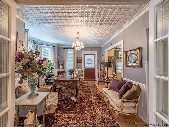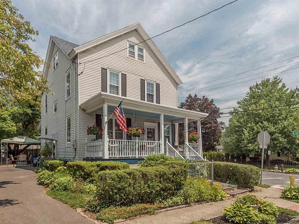 Walk to Kingston's uptown historic stockade district, bus station and Forsythe Park just up the street or just a minutes drive to the NYS Thruway. This 3 bedrooms 2 bath is conveniently located and full of charm. Tin ceilings, clawfoot tub, with plenty of space for entertaining. Full front porch, basement, and large walk-up attic. Outside is a large front porch, flower garden and partially fenced in yard. Updated windows, central Ac, this home is move-in ready. Come to see for yourself. Master bedroom has a walk-in closet which used to be the 4th bedroom and could easily be converted back.