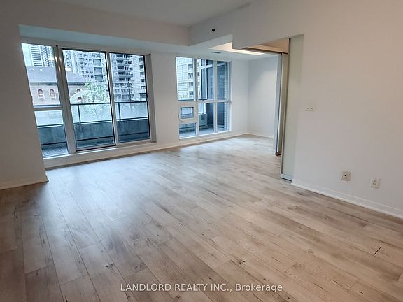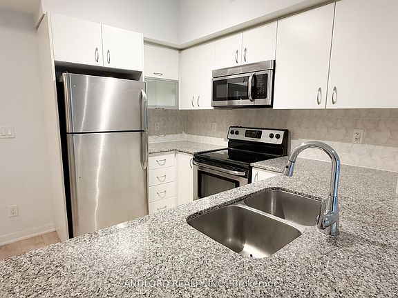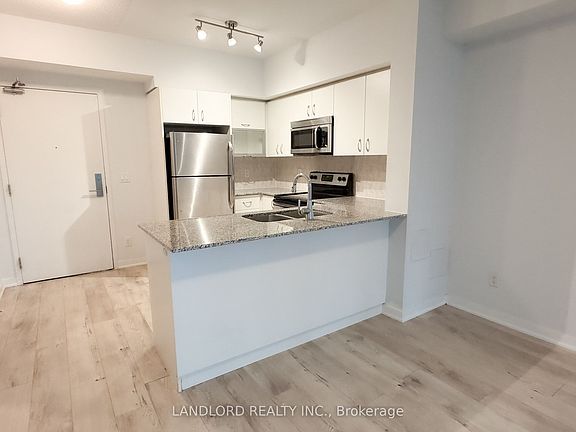 Vacant move in ready professionally managed east-facing unfurnished suite directly overlooking Liberty Village Park from a wide private balcony! Larger than the average one bedroom suite, the layout features a peninsula kitchen with breakfast bar overlooking open concept living room, corner den/office space, and bedroom that opens towards the park. Features and finishes include vinyl plank flooring throughout, stone countertops, laundry centre in bathroom, stainless steel appliances, tile backsplash, undermount steel sink, quiet and convenient second floor placement overlooking park, suite controlled heating and cooling. || Appliances: fridge, electric stove, range exhaust, dishwasher, washer, dryer. || Utilities: tenant pays electricity. || Parking and locker not included. || Building amenities: refer to listing images