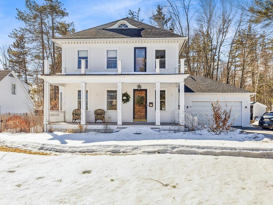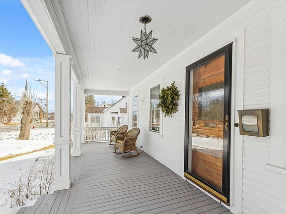 Step back in time and fall in love with this stunning 1904 antique Colonial located in the heart of Jaffrey, NH. This in-town treasure combines the best of historic charm and modern living. Original woodwork, elegant pocket doors, and dazzling stained-glass windows set the tone for a warm and inviting atmosphere. High 9 foot and 8 foot ceilings and period lighting fixtures create a sense of timeless elegance, while enticing details like the built-in dining room china cabinet add extra touches of character. The first-floor primary suite offers convenience and comfort with a walk-in closet and private bath. The heart of the home is a bespoke kitchen and beautifully crafted pantry, perfect for storage or showcasing your favorite pieces. Upstairs, you’ll find four more bedrooms, a bonus room, and a second-floor attic, plus a walk-up third-floor attic—perfect for storage or future creative endeavors. Outside, relax on either the serene screened back porch or the welcoming front porch, surrounded by thoughtfully designed native plant gardens. Town water and sewer make living here easy and practical. This is a rare opportunity to own a piece of history that feels like home. Come see it and imagine the possibilities! open house 5/18 12-2