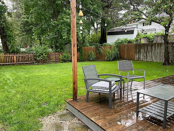 Home features two large second floor bedrooms and full bath with custom tile bath surround. First floor features an open kitchen with island, dining nook, living room plus two additional bedrooms or make one an office! Another full bath on the first floor including a custom tile shower. Hardwood or tile flooring throughout the home. Newly built mudroom entrance with built-in cabinets for storage. and newly built detached 2 car garage for all the toys! Enjoy the fenced in backyard with deck and mature landscaping around the home. All of this in a fantastic walkable neighborhood!