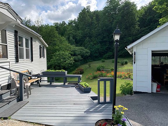 Discover the charm of this beautiful Brandon village home, featuring perennial gardens that surround the property. Open double living room filled with natural light from the bay window. The hardwood floors and natural woodwork add warmth and character. Cozy up by the woodstove during cooler months, or enjoy the three-season porch for a touch of outdoor living without the elements. The deck overlooks a serene landscape, providing a perfect spot for relaxation. This home combines charm with practical features, making it a perfect retreat. Additional amenities include a garage with pellet stove, shed, and the convenience of being within walking distance to beautiful downtown Brandon!