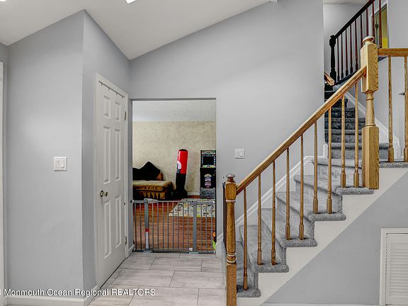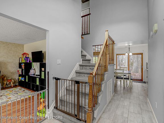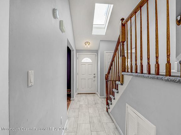 Welcome to this beautifully updated center hall Colonial through the cathedral ceiling foyer with skylight. This 3 Bedroom, 2.5 Baths home features a newer kitchen with quartz counter tops, glass back splash, new SS appliances, separate breakfast area and sliding doors to yard leading to the large Trex deck. Relax and enjoy the cozy family room with warm woodburning brick fireplace and access to the private fully fenced yard through the second set of sliding doors that also lead to the deck. Master Bedroom has double closets, recessed lighting and full bath. House is directly across from community pool and playground area for easy access on those hot summer days. Close to shopping, transportation and beautiful Jersey Shore beaches!