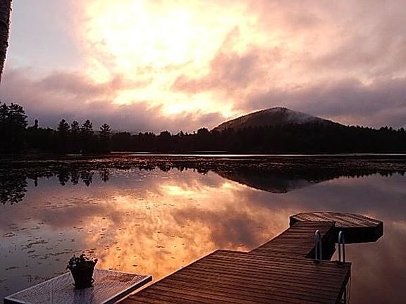 Tranquil Waterfront setting for this 3-4 bedroom Contemporary home. Swimming, Fishing, Canoeing. Great Room and Master Bedroom overlook the pond. Kitchen, Dining room, Den, and bath complete the 1st floor. 2nd floor has 2 bedrooms and a storage room that could be BR #4. Beautiful hardwood floors. Enjoy early mornings on the porch with views of Tully Mountain. Outbuilding/Studio, Patio, Dock, and Decking. Attractive landscaping. All updated systems. Recently re-shingled roof.