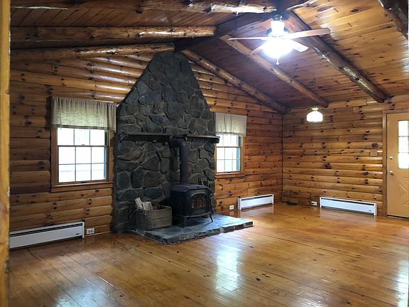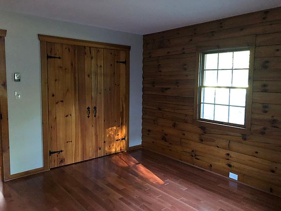 Hidden behind a sheep farm you will find a very secluded log cabin with beautiful yard. Lots of space for relaxation and gardening. House features 2 bedrooms 1.5 baths with fully finished basement. Hardwood floors on the first level. Spacious front porch and small deck in the back. 2 sheds for storage.