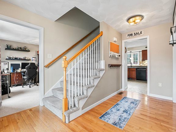 Welcome to Cottonwood subdivision, one of Somersworth's most desirable neighborhoods. Rarely available, this well cared for 3-level Colonial on a one acre lot has 8 rooms, 3 bedrooms, 3.5 baths. Enter to gleaming hardwood floors and built-in space for coats, shoes and even board games! The bright airy first floor includes a Chef’s kitchen with cherry wood cabinets, great counter space, a breakfast nook that effortlessly opens to the back deck. Off the kitchen find a perfectly sized dining room (currently an office) and a large room for a den/office. Not to be missed the huge family room with soaring ceilings, expansive windows and gas fireplace. A first floor laundry is tucked in a nicely appointed ½ bath. The second floor primary suite has an ensuite full bath and large his/hers walk-in closet. Completing the second floor are two good sized bedrooms, full bath and a flexible space for another office/craft area/sitting area. The fully finished third floor is currently used as a guest area, media room and storage. This property checks all the boxes including central AC, central VAC, and finished basement with full bath, living room and a bonus room. There is also a two car garage with direct entry. Relax on the private back deck and enjoy the mature landscaping, fully fenced-in backyard and additional 2 sheds. Situated close to shopping and minutes to highway for commuters. Don’t miss this opportunity! Call for a private showing; public open house SAT 11/9 from 11 AM - 1 pm.