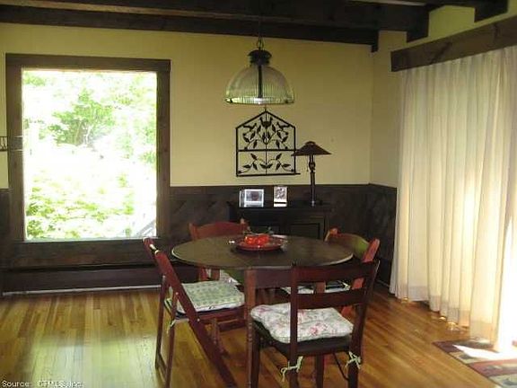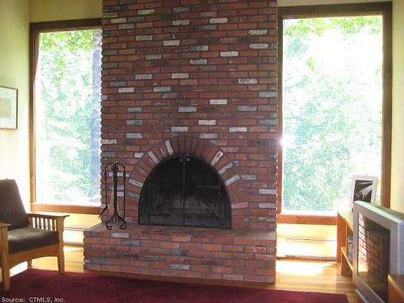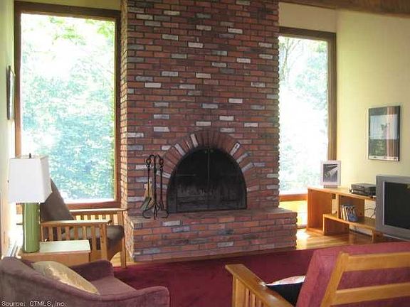 NATURE LOVERS PARADISE! Unique architect designed post & beam contemporary saltbox.4AC provides privacy- wrap around deck overlooks a brook & plenty of wildlife & birds. Magnificent brick fireplace. Exc. working kitchen w soapstone counters and sink.
