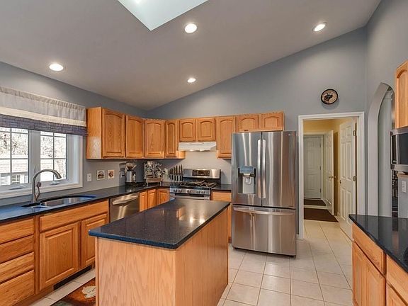 - Kit Dscrp: Main Level, Dining Area, Countertops - Stone/Granite/Solid, Deck - Exterior, Skylight, Flooring - Stone/Ceramic Tile, Kitchen Island, Stainless Steel Appliances, Slider, Exterior Access, Gas Stove, Archway, Ceiling - Vaulted