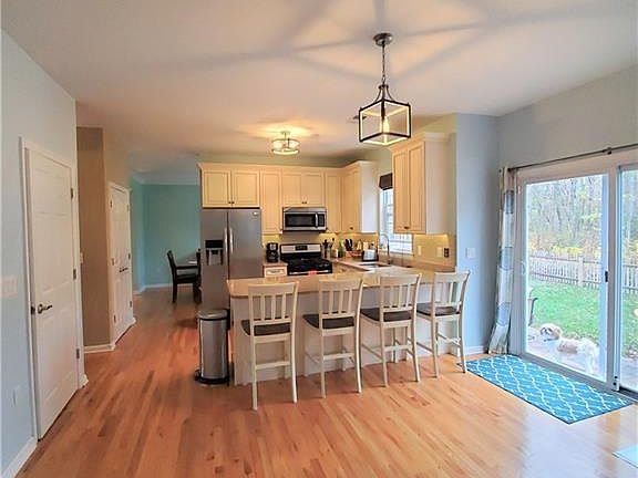 MOVE RIGHT IN! THIS 5 YEAR YOUNG 5 BDRM/2.5 BATH COLONIAL IS A STUNNER! 9 FT FIRST FLR CEILINGS & HARDWOOD FLOORING. FULL STAINLESS STEEL APPLIANCE PKG, GRANITE COUNTERS, 42 CABINETRY WITH UNDER CABINET LIGHTING & BREAKFAST BAR COMPLETE THE KITCHEN. FORMAL DINING RM OPENS TO SPACIOUS LIVING RM WITH CROWN MOLDING. NOT TO BE MISSED IS THE UPGRADED LIGHT FIXTURES THRU-OUT, 2 ZONE HEAT & A/C, MASTER BDRM WITH WALK IN CLOSET AND MASTER BATH. 3 MORE BDRMS ALL WITH AMPLE CLOSET SPACE. OUTSIDE A FULLY FENCED YARD WITH PAVERED PATIO & FIRE PIT BACKING TO WOODS. 2 CAR GARAGE WITH WORK BENCH & CABINETS.
