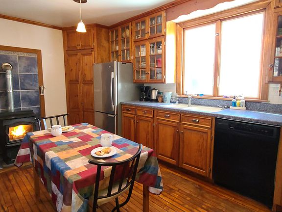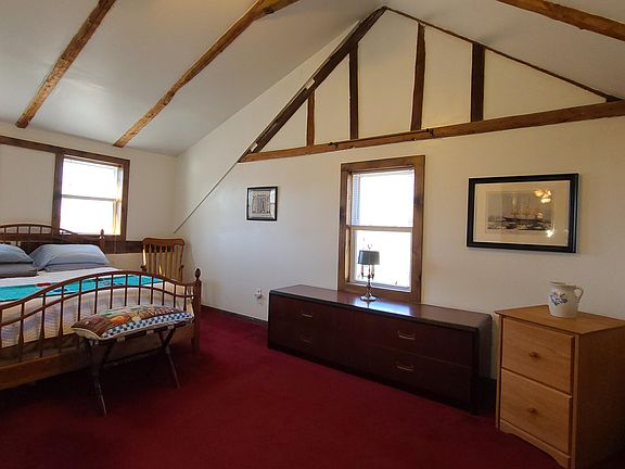 Welcome to Cheer Up Farm! Modern amenities in an 1832 farmhouse on 2.7 acres. The kitchen, kept cozy by a pellet stove, features beautiful custom cabinets by a well known local craftsman, which provide plentiful storage as well as display space. A deep corner pantry with TV cabinet above holds everything else. Built-ins and a fireplace make for an inviting dining room. Exposed beams and a custom detail in the original wood floor make the large living room feel warm and inviting. One bedroom, a 1/2 bath and laundry round out the first floor. The massive master bedroom with vaulted ceilings carries the country farmhouse charm to the second floor. A large tiled shower was added to the second floor bathroom in 2020. A classic New England attached barn has 3 stalls previously used for horses. The connector includes a half bath and storage for wood/pellets, coats, boots and much more. Seller had professional building inspection done in preparation for sale and the few items flagged have been addressed. New furnace 9/2018.
