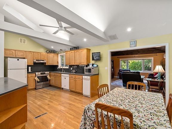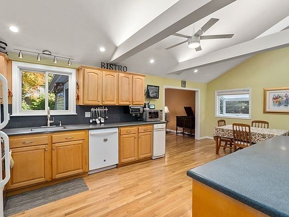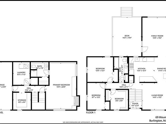 Welcome home to 69 Mountain Road! Situated on a lovely lot on a quiet street in Burlington, this home is a commuter’s dream, close to shopping, dining and easy highway access. The main level has three bedrooms, a full bathroom, a sunny dining room with bay windows, a bright eat in kitchen kitchen, and the main attraction: a huge cathedral ceiling family room leading out to a large deck. In the lower level is a large bonus room with a fireplace and another full bathroom. This space is perfect for an additional family room with space left over for a guest bedroom. The large private deck features a remote controlled awning. Loads of storage! Newer roof, gutters and HVAC. This home features too may updates to list; please see feature sheet.