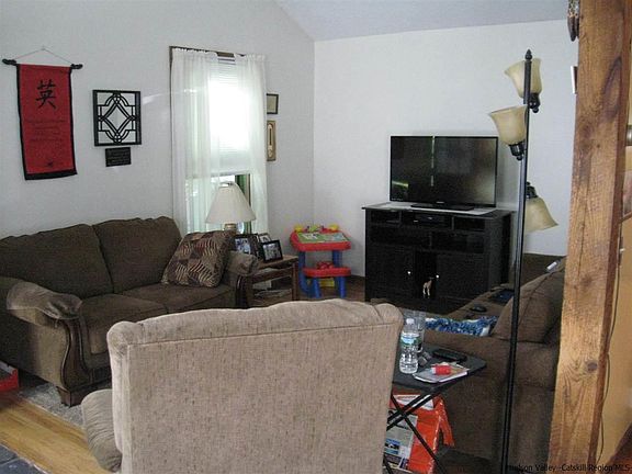 Cute country cottage on .34 acre lot in, low tax, town of Olive. Contemporary feel with high ceilings and loft over kitchen. Freshly painted exterior and new roof. Beautiful remodeled bathroom in 2017. Laundry room converted to den/third bedroom. Interior has hardwood floors and some exposed beams. Relax on the deck off the dining room or in the backyard. Close to Woodstock and on the way to the recreation areas of winter and summer.