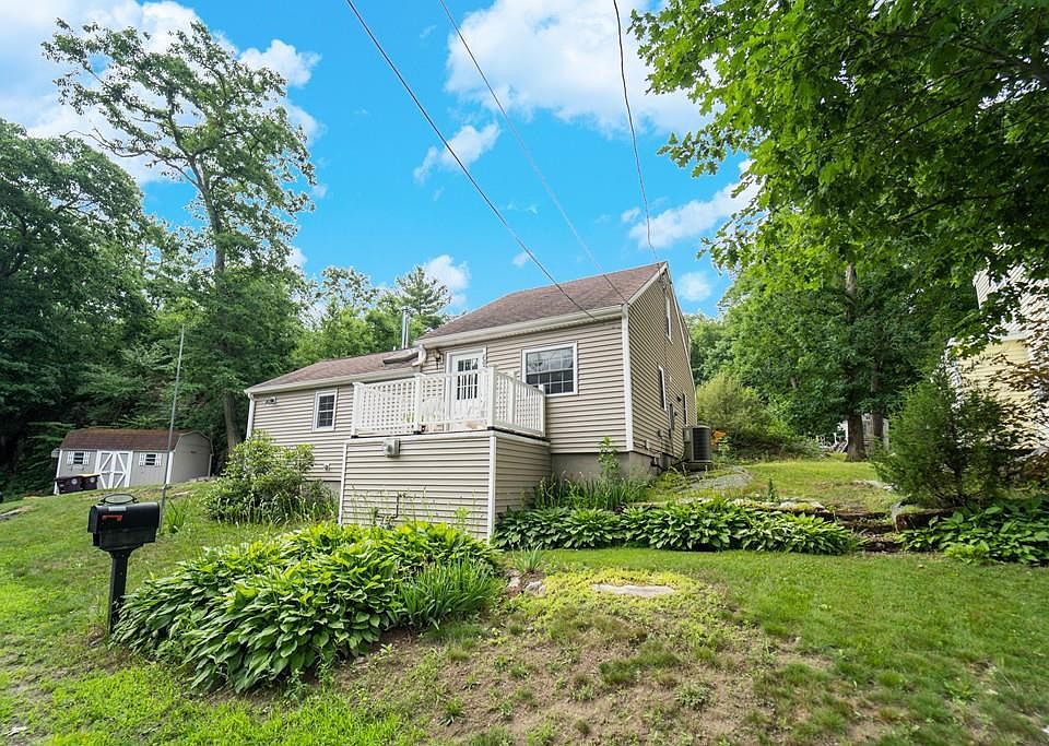Great location!! On a quiet dead-end road while being central to highway, shops, and necessities. This two bedroom home with additional loft space is perfect as a starter or to downsize in. Its got a comfy cozy feel inside and close-to-nature feel outside. Hang by the fire pit built into the rocks or relax on the composite back deck. Enjoy fishing on Whitman's pond and hikes through Cavern Rock Area. Inside, the family room has cathedral ceilings and includes a wood stove that can heat the whole house in the colder months. Master bedroom is located on first floor with Juliet balcony to drink your morning coffee on. Two full bathrooms is a plus, with downstairs bath having a jacuzzi soak tub and shower. Kitchen is large and open with dining area and slider leading out to back deck. Second floor has loft area, second bedroom, and full bathroom with tub. Come See!!