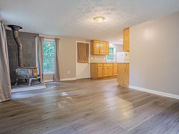 New siding, new roof, new flooring, (no carpet) wood-siding, fixtures, c-tops, windows and more. Home has a wood heater and window A/C. Large wired storage building with electricity. Fenced lot also passes with sale. The property runs to a narrow end of the Lake. Sold "As Is".