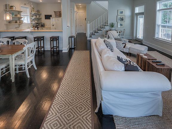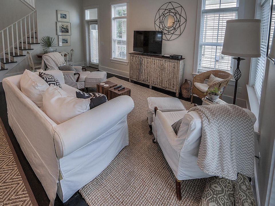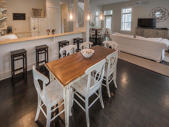 This well designed beach cottage offers 3 bedrooms and a bunkroom with a spacious open concept living and dining area for large gatherings, featuring 10 ft ceilings and hardwood floors throughout. The exterior has two covered decks with a third floor outside tower, a great place to relax and enjoy the views of the Gulf and sunsets. Located in the desirable Summer's Edge in Seagrove, on the south side of 30A, there is a gate on the north end, which ensures no thru traffic. Summer's Edge boosts 2 pools (1 is heated), plus one of the best neighborhood beach accesses to the white sand and emerald waters of the Gulf of Mexico.