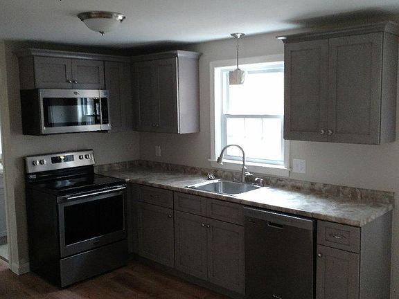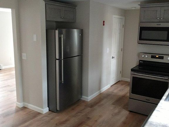 2 Bedroom 1.5 bath Duplex in a quiet East Derry Location. Completely remodeled with new baths, kitchens, flooring, etc. Private yard space surrounded by trees. Low traffic street. Tenant pays snow removal and garbage removal, and utilities. washer/dryer hookups, deck, basement for storage, and parking for 2 cars. 1 Year lease, no pets, no smoking