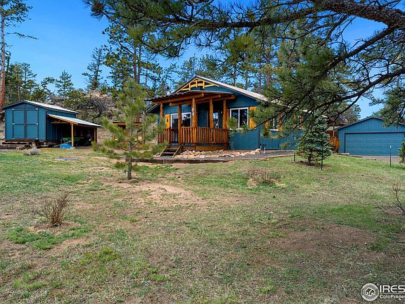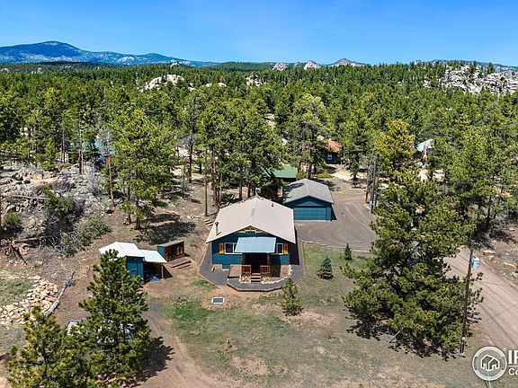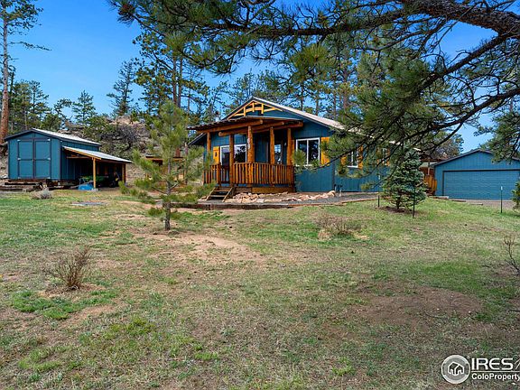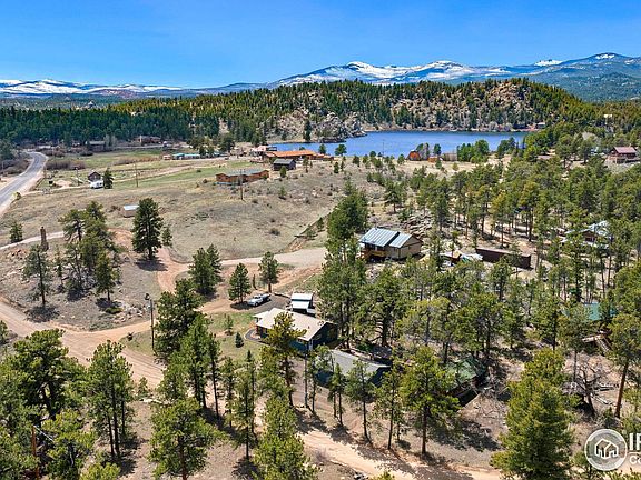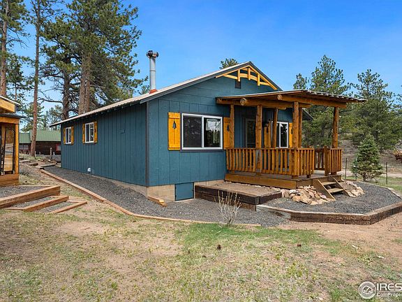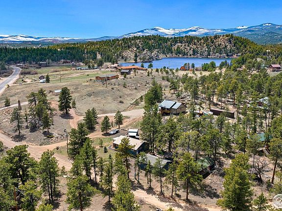 Prepare to fall in love with this adorable year-round mountain retreat situated on 2 lots with highly desirable 3-car garage to store all your toys in! Not only does the property showcase immense attention to detail & tasteful rustic charm updates, but your outdoor playground is literally out your front door. Take advantage of full access to the 8 private lakes nearby with included fishing pass that transfers with the residence, natural rock outcroppings & mature trees, nearby hiking, biking, camping, & more. Exterior features include new paint, custom wood shutters/accents, new covered front porch, metal roof, & 5 ft fire mitigation surrounding the perimeter to save in insurance costs. Matching garage, 2 storage sheds, & awesome outdoor oasis with firepit area, horseshoe pit, & treehouse fort ready for entertaining & to enjoy! The bright interior welcomes you in with its open floor plan featuring newly painted walls, laminate floors, pine trim, & quality pine doors. Impressive kitchen contains high-end stainless appliances, butcher block counters, painted cabinets, extensive stone backsplash, & copper sink. Cozy wood burning stove or Propane wall heater keeps things warm on Winter nights. The master & 2nd bedrooms share a full bathroom with tile shower & custom vanity with copper sink. Stackable Washer/Dryer are included. Cute & functional mudroom leads out to the 640 sq. ft. garage with 100 amp service in place. RV plug-in for you or guests. Home is on a well & septic with leech field. 4 year hot water heater. Road maintenance comes all the way to the property for easy commutes down to the Front Range. Pride of ownership is evident in this property & you will not be disappointed. Walk to the library & bingo nights!