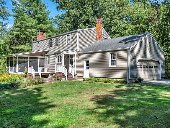 Welcome to this beautifully maintained oversized Cape, offering the perfect blend of classic charm and modern comfort. Nestled on nearly 2 acres of serene, private land, this move-in-ready home features 3 spacious bedrooms, 2 .5 bathrooms and generous 2,230 sq. ft. of living space. Step inside and fall in love with the open-concept eat in kitchen, complete with a cozy fireplace-ideal for gatherings in the attached dining room and everyday living. A second fireplace in the family room (currently being used as a bedroom) adds warmth and ambiance to the main living area, creating a welcoming atmosphere throughout the home. The fireplace surround and built in shelving provides a place to display all of your treasures. The oversized living room is ideal for those special holidays or just a peaceful place to retreat. Enjoy peaceful mornings and relaxing evenings in the screened-in sun porch, surrounded by nature and perfect for taking in the changing seasons. The property also boasts a two-car garage, offering convenience and additional storage. This home offers the privacy you crave with the space you need-just unpack and settle in!
