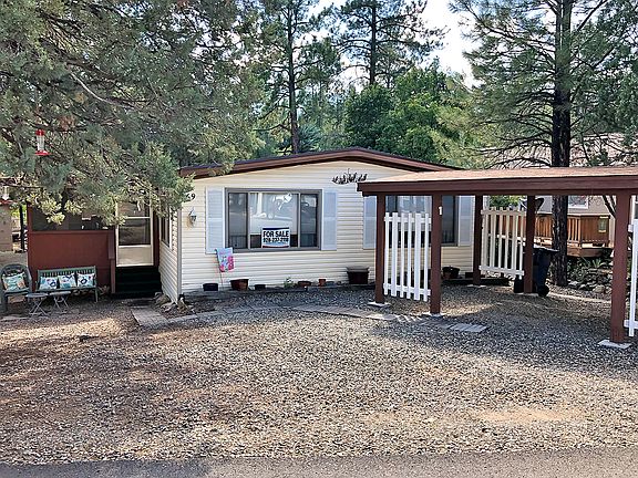 Pine Lakes, a professionally managed, well-maintained 55+ manufactured home community, currently has a 1344 sq. ft. 1978 home with 2 bedrooms and 2 bathrooms for sale for only $99,900.00 It has a huge screened in porch for enjoying the clean pine air. Take advantage of this offer now and live in one of the state's most attractive areas. Call and schedule a viewing of this home. Adjacent to Prescott National Forest with over 450 miles of biking, hiking and nature at if finest. Generous incentive for outside realtors.