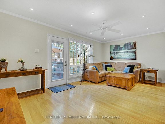 Get The Space Of A House For The Price Of A Downtown Condo. This Updated Townhome Is Located Within Minutes To Hwys 427, 401, And Qew And 10 Min To Airport! Main Floor Has An Open-Concept Living And Dining Room With A Walkout To A Backyard From The Living Room. Mature Trees And A Privacy Fence Create A Quiet Park-Like Setting To Enjoy The Outdoors. The Dining Room Is Complemented With Lovely Built-In Shelving. The Bright Kitchen With Granite Countertops Is Equipped With Stainless Steel Appliances And Can Accommodate An Eat-In Area Or An Island.The Upper Floor Has A Large Primary Bedroom With An Ample-Sized Double Closet And 2 Additional Bedrooms. The Bathroom Has Been Updated With A Granite Countertop Sink.The Basement Features A Gas Fireplace, A Custom-Built Desk And Shelves. An Additional Room Is Currently Used As A Gym But Can Easily Be Converted Into A Guest Room Or Den
