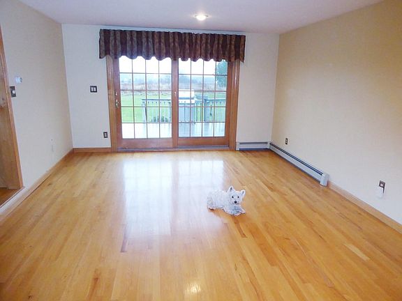Wonderful one-level home with 3 bedrooms and 2 full baths. Hardwood in most of the home. Kitchen features breakfast island w/plenty of cabinet storage. Master bedroom suite with double closets, full bath and four-season sunroom attached with two skylights and cathedral ceiling. Living room has a wood burning fireplace. Sunken family with cozy wood stove. Large mudroom and low maintenance composite deck with retractable awning. Small pond for refreshing summertime dips. Surrounded by nature and plenty of mountain views. Handyman in the family will appreciate the large garage with additional workshop area. Owned solar panels offer year-round energy savings! Well maintained home.