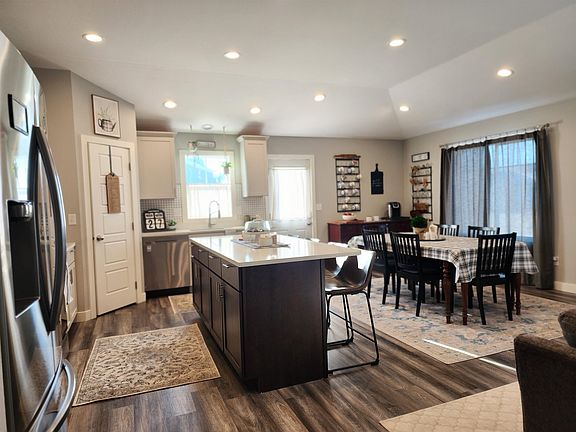 Welcome home to Stonebridge Farms, where you'll find a truly unique Split-Foyer that is sure to impress. With six spacious bedrooms, over 2800 square feet of interior space, and a 1/4 acre lot, you'll have plenty of room to enjoy all that this home has to offer. As you step inside, you'll notice the spacious entry with a coat closet and stairs leading up or down.  The kitchen is stunning featuring custom grey Medallion cabinetry with slow close drawers and doors, complete with organizers and pullouts. There are also quartz countertops, a custom tile backsplash,  LG appliance's, large pantry, and an oversized island measuring 7 Feet long!!  The dining and living areas are open to the kitchen, creating a welcoming and cohesive space that's perfect for entertaining. Gorgeous plank flooring runs seamlessly throughout the main level, and quality Pella windows provide abundant natural lighting, making the space feel bright and airy. Access to the 20x16 treated and stained wood deck, is off of the dinning area with steps down to the partially fenced in back yard. And let's not forget about the sleek fireplace, which adds a touch of elegance and warmth to the living area.  The primary bedroom is generously sized, with space for multiple pieces of furniture. The ensuite bathroom is equally impressive, featuring an oversized vanity with dual sinks, a tiled stand alone shower, and a spacious closet for all your clothing and accessories. Bedrooms two and three are also well-sized and feature plush carpeting, while the main full bathroom features a custom vanity and tiled flooring. But the real showstopper is the fully finished daylight basement, complete with a designated gathering room, a full bathroom with a linen closet, and bedrooms 4, 5, and 6 which are nice sized and have additional storage. The laundry room is also fully finished, and there's even a large mechanical room for extra storage.  And let's not forget about the insulated, sheet rocked triple car attached garage with a gas heater and floor drains. This home truly has it all, including walking paths, park space, picnic areas, and a basketball court within close proximity. Plus, with easy access to Minot Air Force Base, retail amenities, and major thoroughfares, you'll have everything you need right at your fingertips.  Welcome home to Stonebridge Farms, where luxury, comfort, and convenience all come together in one amazing package.  Call your favorite agent today to schedule your showing!!
