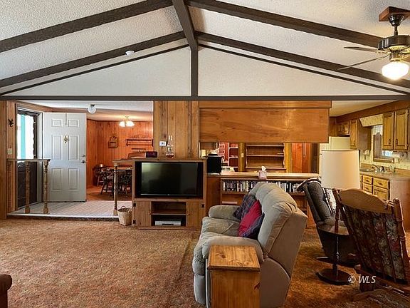 This very well maintained 3 bedroom home has tons of storage! Every bedroom has a walk-in closet, and there is a walk-in pantry also. The open floor plan has high vaulted and beamed ceilings, and lots of windows. Very nice cabinets in the spacious kitchen (lots of cabinets!), and gas range. The very large living room features a beautiful wood fireplace (current owners hooked up a propane heater but could be used for wood fireplace instead). Outside is a hiker's dream, as you have 11.29 acres of woods to explore! Large rock outcroppings make for a natural park-like setting. A very large covered deck on the back of the house is a great outdoor dining spot. There is also a nice covered deck on the front of the home, plus a handicapped ramp leading up to the front door. A super-sized 2-car garage/workshop is located near the home as well as an additional one-car garage, so tons of storage for cars, boats, 4-wheelers, etc. The 11.29 acres is actually 2 lots, so an additional home could be built on the adjoining lot to the home! Listed at $349,000.