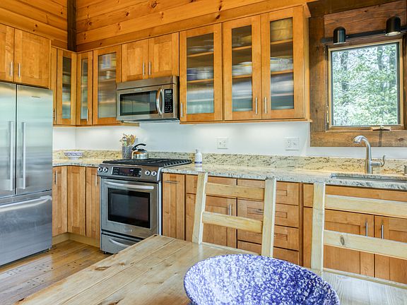 Gorgeous WATERFRONT property with stunning views located in the exclusive 740 acre Wildwood community. This impeccable contemporary home features 7 rooms, 3 bedroom, 2.5 baths, third floor loft, finished walk out basement & a lovely three season porch. Warmth & charm throughout the first floor with an updated kitchen, granite counters, stainless steel appliances, hardwood floors & water views. Beautiful sunken living room plus a large family room with wood floors & 1/2 bath complete the first floor. Master bedroom has vaulted wood ceilings, skylights & master bath. Spiral staircase leads to second floor with two bedrooms & full bath. Enjoy the privacy of your home on the large deck overlooking your wooded grounds & serene 9 acre pond. Wildwood has a clubhouse, baseball field, tennis/basketball court, two beautiful ponds, endless trails, multiple beaches & recreational areas.