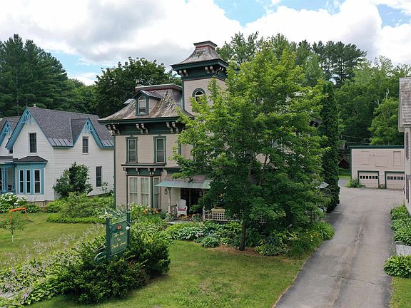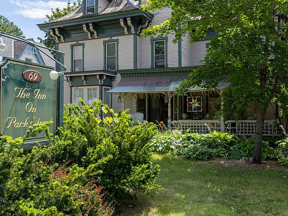 Located on prestigious Park St., with its wide avenue and sidewalks into town, this historical home has been used as an inn by the current owner. The architectural details abound, with copper roofing along the beautiful wraparound porch, impressive trim and wood detailing throughout. Come into the gracious entry, and immediately you will feel at home. Hardwood floors lead you into the spacious living room, with coffered ceiling and wood burning fireplace. The formal dining room has built in cabinetry and wainscoting to set the stage for amazing meals. The kitchen features a large island, wood cookstove, and plenty of counter space for meal preparation! Two first floor bedrooms with en suite baths- one on each end of the main level. On the second level you will find four more bedrooms and three baths, with the third level a large bedroom suite. Whether you are making this your new home or looking to run a bed and breakfast, there is room for everyone! The two car garage in back provides shelter for vehicles and storage. Walk to downtown Brandon with its new town green, restaurants, shops and events! Every time you drive down the street to this home, you will be glad that you can call it your own!