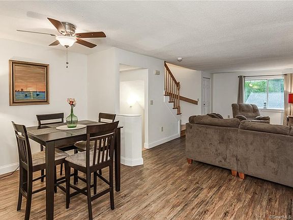Wonderful complex close to both RI and MA!!! Has just been professionally cleaned and is ready for it's new owners! The main level is an open floor plan with kitchen open to dining area and to living room. Kitchen looks out onto treed area and deck for easy grilling or just relaxing. Large master bedroom upstairs has 2 closets. Both bathrooms are in great condition too. Drive right into garage and up the stairs to the living area. Plenty of storage. Don't miss this one!!!