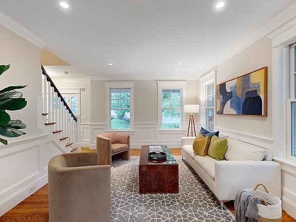This elegantly designed home is situated in the Riverdale/Southfield neighborhood, one of Concord Center's most desirable & sought after locations. Built in 2015, the house boasts a welcoming open floor plan fit for today's modern living. The chef's kitchen features a large center island, Thermador appliances, granite countertops & custom cabinetry paired to the family room w/ a gas fireplace overlooks serenity through its windows, a sprawling level backyard. 9’ ceilings and hardwood floors throughout the first floor with southern exposed windows and a screened cedar porch invite the sunshine and natural light. The second floor boasts four spacious bedrooms and a laundry room for convenience. The large primary features a spa-like primary bathroom w/ glass shower & soaking tub. The oversized open third floor makes a great kids’ playroom or a nestled fifth bedroom suite. The subject location is convenient to everything Concord Center has to offer with access to the train and Rte.