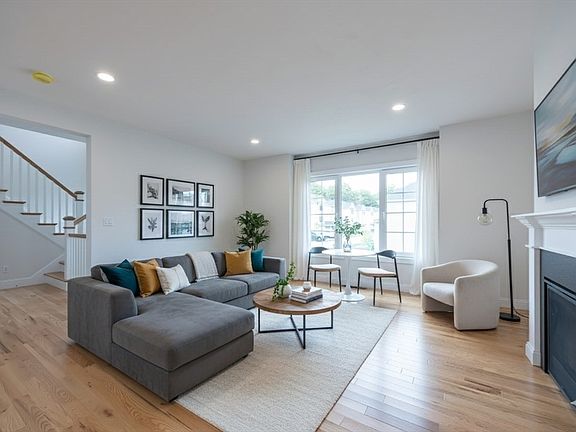 Brand-new corner unit with a 12-month builder’s warranty, fully complete and ready to close in just 30 days. The open second floor features a spacious family room with a natural gas fireplace and granite surround, plus a bright kitchen with stainless steel appliances, quartz island with seating, upgraded quartz counters, and timeless white cabinetry. A dedicated office next to the kitchen makes working from home seamless. Step out to a 10' x 10' composite deck overlooking the corner lot, ideal for outdoor dining, entertaining, or relaxing. Upstairs, the primary suite offers a walk-in closet, double vanities, and a beautifully tiled shower, with a full washer/dryer closet for everyday ease. Bedrooms are move-in ready with the option to upgrade to hardwood floors for added elegance and long-lasting style. This home combines modern upgrades, flexible living, abundant natural light, warranty protection, and quick closing—ready for you now!