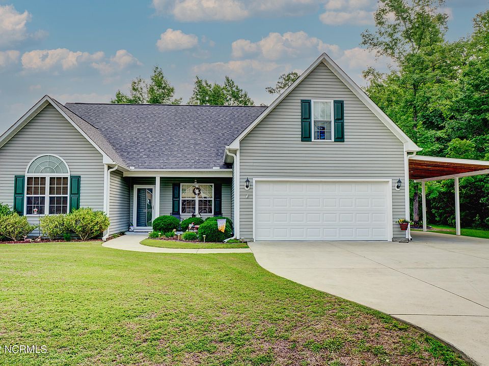 Welcome to your home in this quaint 21 home community of School View located across the street from Cape Fear Elementary. This well maintained 3-bedroom 2 bath home with bonus room is in cul de sac and is move in ready! Open floor plan offers a spacious kitchen area with a breakfast nook that opens into the living room, which is great for entertaining. Formal dining room, living room with fireplace, 2 guests bedroom boasts engineered oak wood flooring. Crown molding in main living areas. Shaker style cabinets in the kitchen with tile flooring. Spacious owner's suite has a walk-in closet with a bathroom. The upstairs bonus room can be used for work or play and has a separate room that is already plumb for a bathroom or use for additional storage. Garage has epoxy floors and, on the outside, has a generator hook up. Carport was added along the side of the garage for an extra covered area. Relax outside on the rear patio that overlooks the large back yard that features a gas fire pit area. Yard has an irrigation system. Shed is wired with electricity along with a garden area right next to it. Garden area has separate irrigation. Refrigerator, washer and dryer convey with the property.
