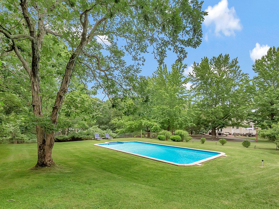 This truly special property boasts over 1.5 acres in the Red Creek area, surrounded by spacious open lawns and mature trees, and offering a level of solace that is hard to beat! Clean and bright living and dining rooms, eat-in kitchen, separate den with walkout slider, laundry room and full bath comprise the first floor. Impeccably maintained 4 bedrooms with 3 full baths, Central air conditioning throughout. Spacious attached 2-car garage with high ceilings, large attic space, and full basement offer lots of storage options. Outdoors, a large brick patio can support all your needs for outdoor dining and entertaining. A large circular driveway leads to the back of the house, which is so convenient! A 20'x40' in-ground pool is perfectly situated at the rear of the property in a secluded setting. Large storage shed just off the pool may hold great potential for a pool house. This special property is also located very close to the West Landing bay beach, Squiretown Park, and Red Creek Pond where a small boat or watercraft can be launched to explore the bay.