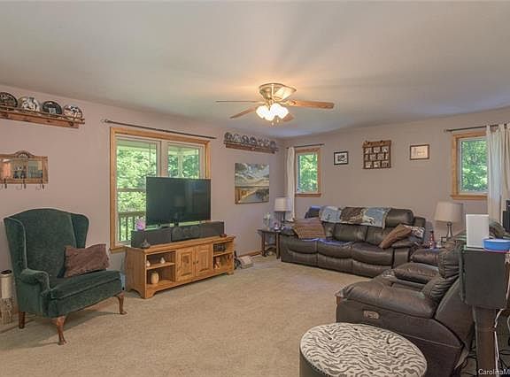 Private home, 15 minutes from Brevard on 1.5 acres surrounded by nature. This home has plenty of living space as well as outdoor space. The main level has your living room, kitchen, dining room, master bedroom a half bath and laundry. The second floor has 2 large bedrooms and a main bathroom and the basement has a den, office and full bath. You can sit on the covered front porch and relax in nature or enjoy the fire pit in the back yard. From this property you have access to the East Fork River where you can fish or tube down the river! This home also has a 10 x 20 outbuilding that has a/c for additional storage.