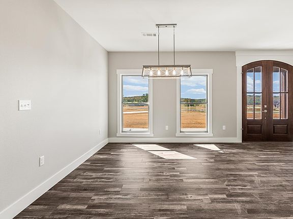 This home has a commanding view of the neighborhood! Enjoy beautiful sunsets from the front porch and lazy evenings on the back porch. Open plan with spacious kitchen and lots of cabinetry. Pantry is hidden behind cabinet doors. Cabinets are painted a soft grey with granite countertops. The fireplace is a focal point in the living room. Guest bedrooms are separate from the primary bedroom. Lockers as you come in from the garage. The laundry leads into the closet which in turn opens to the primary bathroom. So many extra amenities in this home.