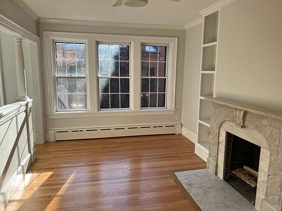 Newly-renovated, sun-filled 1 bedroom steps from the shops and restaurants of Charles and Cambridge Streets on Beacon Hill. 5 minute walk to public transportation, Charles River Esplanade and Public Garden. Charming detail and built-ins, working fireplace, hardwood floors and working fireplace. Excellent storage. 1 block to clean and spacious laundry facilities. Monthly rent includes heat and hot water. First month's rent, last month's rent and one month's broker fee due at lease signing. No smoking. Cats OK. Window AC provided.