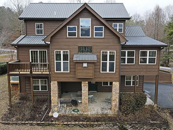 Home sweet home... Turn key mountain living in the breathtaking Trackrock area in Blairsville... Bedrooms and bathrooms on all three levels, spacious loft with fireplace, living room, dining room and screen porch with mountain views. Details of traditional meets country rustic... Enjoy your coffee and expansive mountain views in your newly renovated gazebo... Private deck and jacuzzi bathtub in your primary suite on your main floor... Finished basement leads to a bedroom, bathroom, 2 car garage with ample storage space and a patio... This well-loved home is ready for you!