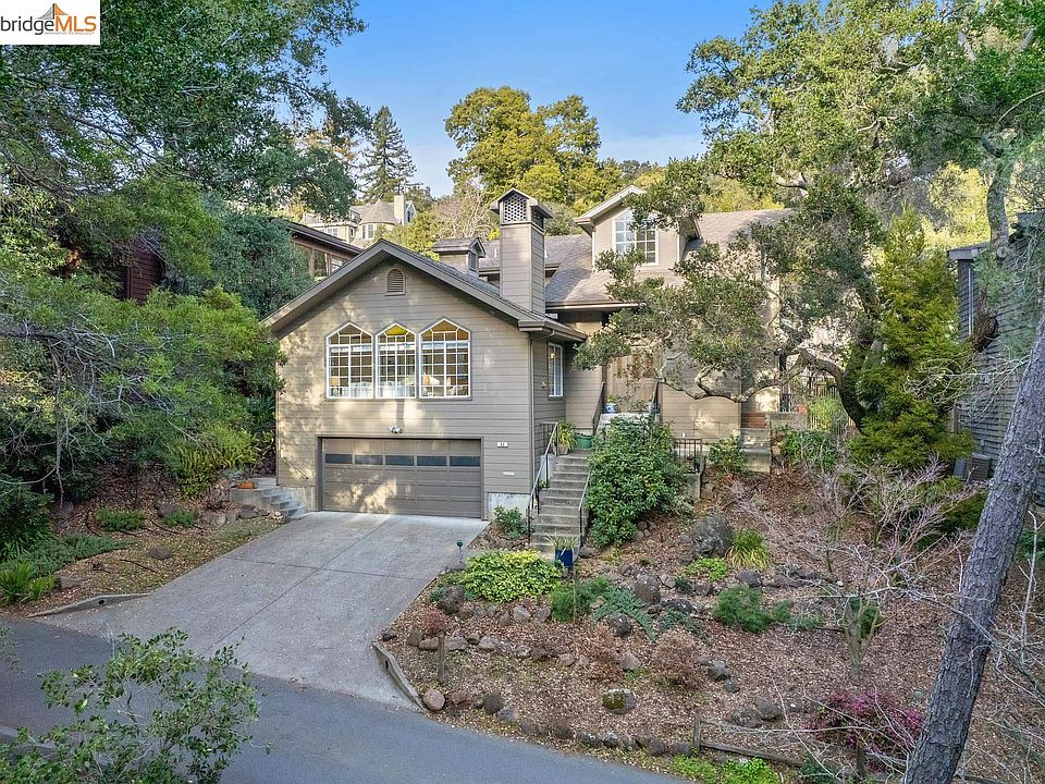 Set in midst of an exclusive enclave between the Rockridge and Claremont neighborhoods, 69 Roble Road is a captivating example of contemporary architecture in a verdant, urban setting. Built in 1993 and set privately among mature trees, this 2++ bedroom, 2 bath home has an open floor plan, vaulted ceilings in the oversized LR. Two generously sized bedrooms on the entry level floor include a spacious primary suite with ample closet and storage space. Upstairs, a large flex space spans the entire length of the house with great natural light through enormous windows. It could function well as a studio, family, play room or bedroom(s). Well maintained with a beautiful back deck and garden, this tranquil retreat is an ideal combination of privacy and convenience. The spacious 2-car garage has interior access to the house, as well as plenty of additional storage. Close to shops and restaurants, the Claremont Hotel, parks and trails and just minutes from Highway 13 and 24.
