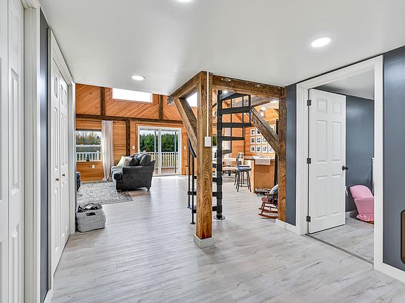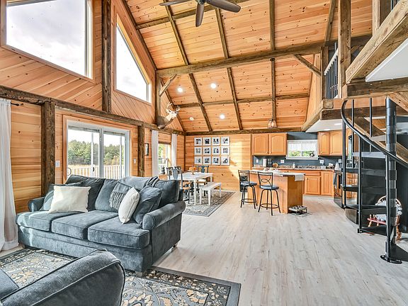 This newly built custom home in Mercer has everything you need! Tucked off a dirt road and sitting on 7+/- acres, this parcel offers a massive lawn, a sprawling field, and a small wooded area. The first level offers a 2 bay heated and finished garage. Head upstairs to the main living floor that boosts timber beams and contrasted by pine walls and durable laminate floors. The kitchen, dinning area, and livingroom all complement the open floor plan and vaulted ceilings as they direct you towards the sliding doors which lead to the second-level-deck. From there, sip a morning coffee or enjoy a late afternoon glass of wine as you enjoy the views of your newly purchased property. Back inside, you will find two storage closets for added space, a full bathroom with washer and dryer, and a small bedroom. Head up the spiral staircase to the highest point and enjoy a private yet open bedroom loft. Each morning you will awake to a lovely view through the large windows facing the back of the property. This property is extremely easy to maintain with vinyl siding, metal roof, composite decking, direct vent heaters, and no basement.
