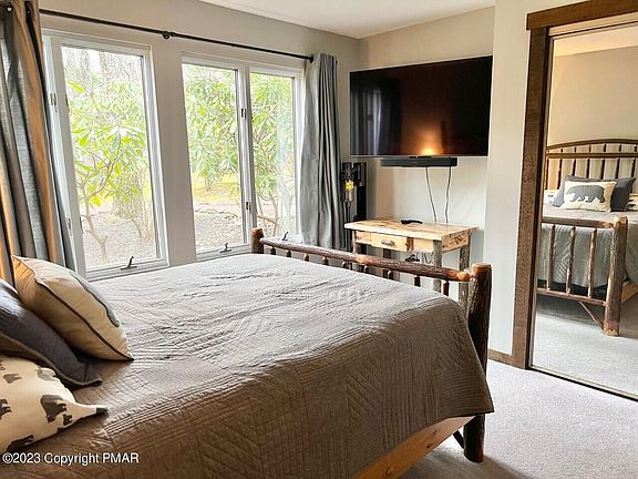 LAKEVIEW!!! No kidding! Chill and enjoy the comfort of 2 BR/2BA mountain living! This end unit townhome has wrap around deck with ski and storage closet for extra comfort! Its gorgeous log furnishings remain as well as room with built in beds! Painted when family purchased for weekend holiday use and new appliances installed will remain! Crawl Space was insulation lined and waterproof thanks to previous owner! Short Term Renter friendly HOA and Township, must be renewed annually.