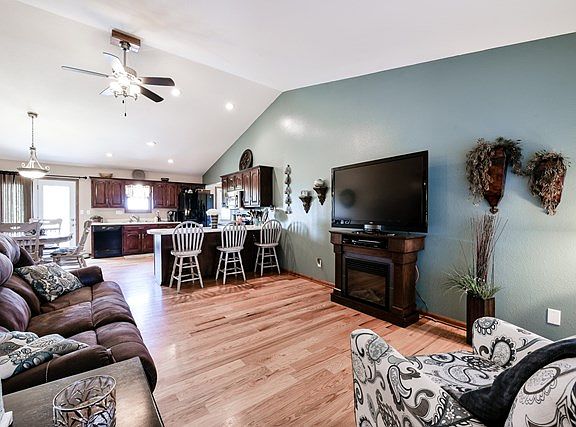 Step inside and take in the BEAUTY of this well maintained and updated Ranch style home. From the moment you enter, you will be drawn to the gorgeous hard wood floors throughout that have been recently refinished. The open floor plan and vaulted ceilings with modern fixtures and fresh paint will be sure to please. The kitchen is a chef's dream with custom cabinetry throughout and recently updated appliances. Escape away to the Master Suite and enjoy privacy of your own bathroom featuring a double vanity space, not to mention a closet space suited for the clothes and shoes enthusiasts. Enjoy everything that the main level living lifestyle has to offer! The basement offers additional space to spread out and entertain and the garages are to to please! All of this sitting on a GORGEOUS lot that has great space to entertain outdoors and for the young at heart to play! Too many additional features to mention....Don't miss out on this MUST SEE HOME...Schedule your showing TODAY!