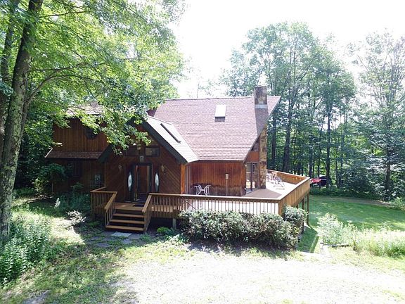 PRIVATE & SECLUDED COUNTRY CHALET ON 4.34 ACRES. Includes frontage on Middle Creek and deeded rights to 2+ acre private pond! Home features open great room with stone fireplace, loft with grand master suite, and lower level family room with wet bar and walk out to covered patio. A great place to entertain and have fun!