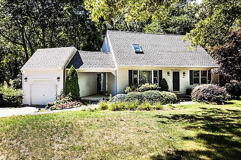 Click "Virtual Tour" for 3D Walk Thru of Picturesque Contemporary Cape! Property boasts new roof, hardwoods, granite kitchen with center island, vaulted ceilings, finished lower with walk out, garage & deck overlooking beautifully landscaped yard!
