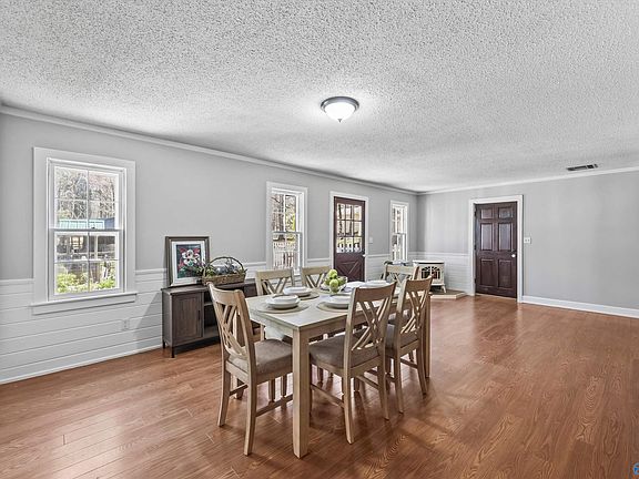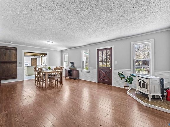 Beautiful farmhouse on over 3 acres MINUTES from S Huntsville! Property includes 6-stall barn w/ water & electricity, a detached garage/workshop, multiple sheds (one w/ electricity), garden, & fruit trees. This home has beautiful, exposed wood beams, solid wood barn doors, & a spacious kitchen w/ plenty of counter space, island, & large pantry. The kitchen leads out to a serene patio w/ a koi pond, & large sunroom w/ oversized window, overlooking the expansive property. Updates incl new paint, stove top, garage door, & replacements of HVAC, roof, & electric panel in 2020. Located on a quiet dead-end street w/ no restrictions & is just a short drive to Redstone Arsenal, TN River, & South HSV.