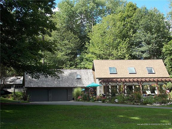 Sunny, bright & one of a kind custom built contemporary home with a very spacious open floor plan. Kitchen has stainless appliances, a large island with double sinks, granite & butcher block counter tops, built-in wine cabinets, a Russian brick fireplace, dining & large family room, title floors, large floor to ceiling windows, 1st floor master bedroom with full bath and sauna, 1st floor office or extra room, 1st floor laundry room, 3 bedrooms, 2.5 baths, skylights, heat pumps, cathedral ceilings, ceiling fans throughout, central vacuum, 2 car garage, separate 2 car garage with workshop, outdoor pergola, large yard with beautiful trees, perennials, 45 feet of waterfrontage & deeded ROW to Lake Wassookeag with dock, enjoy the lake year round!