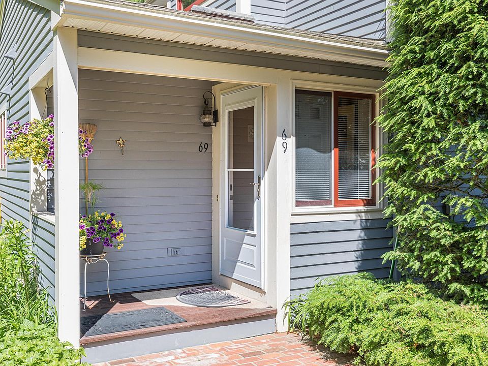 Wow, Large spacious end unit at desirable Spinnaker Point Condominiums, rarely on the market. This unit is located in one of the more private locations with a large newer patio for entertaining or just relaxing. Surrounded by grassed area and has its 'own" NE stone wall. First floor LR with cathedral ceilings and FP overlooks the patio with sliders from both living room and kitchen . Large Dining area plus spacious kitchen with island counter. In addition there is a first floor full bath and third BR or study. Second floor primary bedroom and bath is on the rear of the home with cathedral ceiling and plenty of windows. Guest Bedroom is a large sunny room with interesting design features. There is also a Second full bath for guests. There is a detached garage with storage above and this unit also has a large storage area in the association building. HVAC system replace in 2018 Well maintained home floors. Two free memberships in the 18 and over Field House, w/ indoor swimming pool, running track and basketball court. The association also has an outdoor swimming pool and tennis court for all ages. Spinnaker has on site property management, condo fee covers insurance City of Ports water plus maintenance of the exterior of the building including windows and doors. This is a great home with room for guests.
