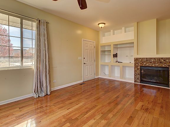 Spacious end unit close to parks, neighborhood pond, and Interstate I-55 is only minutes away! ENTIRE BUILDING BOASTS BRAND NEW ROOF NOVEMBER 2024! Covered front porch entry, BEAUTIFUL hardwood floors in the Living Room and Dining Room-so much natural light with southern exposure! You will love the Living Room gas log fireplace with glass mosaic surround and built in media shelving! Open concept Kitchen with Breakfast Bar, Granite countertops, glass mosaic backsplash, and stainless appliances! Main floor Laundry closet, Powder Room, PLUS under stair storage area! The 2nd floor boasts a 9' x 6' Loft area, perfect for Home Office-bookcases stay! Fantastic L Shaped Master Bedroom with ceiling fan, walk in closet, and full Bath! Bedroom #2 also has a nice walk in closet. Large 2 1/2 car attached garage and garage cabinets will stay! Restaurants, shopping, and services are close by so make your appointment today! This is an Estate Sale sold "As Is."