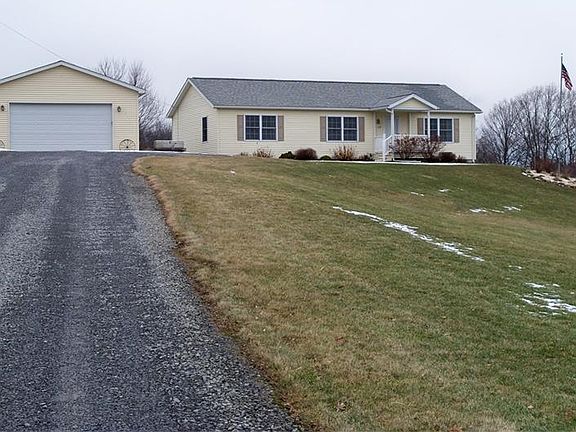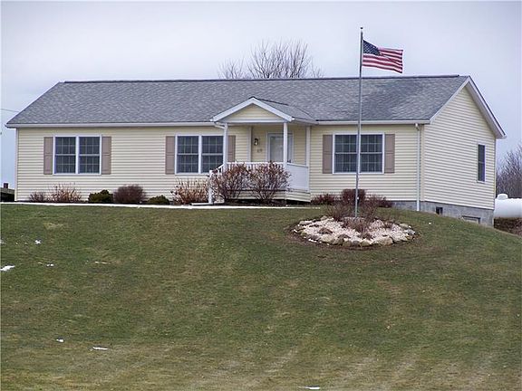 Beautiful Country Setting with views of rolling hills and nearby farms. This well maintained 3 Bedroom, 2 Full Bath ranch is situated on 2.5 acres and has many upgrades. Living Room, Dining Room, and kitchen is an Open Floor Plan. Master bedroom suite, at one end of the home, has a beautiful bathroom with double vanity and separate bathtub and shower. Available living space can be created in the basement that has 10ft ceiling height and foam insulation in the block foundation. Enjoy the land with outdoor toys and pull them right into the basement utilizing the double doors. Do not worry about storms with the back-up generator. Close to the school district and I 79/80 enable you to have carefree travel time. At the end of the day, enjoy the Nature Stone back porch with the remote control SunSetter awning.
