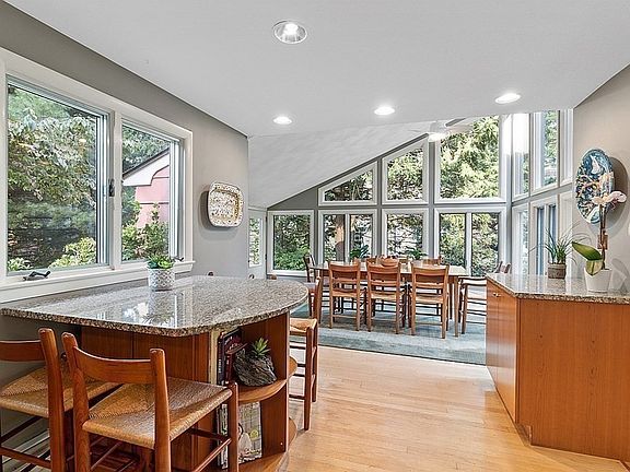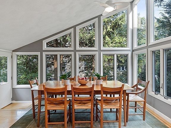 Beautiful inside and out, this 4 bedroom home will impress you with its gorgeous walls of windows, hardwood floors, home office, and flexible floorplan. Updated kitchen with ample cabinet space and breakfast bar opens to the large dining room and the bright fireplaced family room, forming the hub of this home. Large master suite with high ceilings and soaring windows and and another 4th bedroom ensuite. Bonus walk out room can be an inlaw/aupair option or can be used as a recreation room. Enjoy the cool fall evenings on the deck and take in the view of the beautiful private gardens. Desirable location near hwys, Fawn Lake hiking trails, canoeing, fishing, and the elementary school-a few more reasons that this home is a must see! There is a gas line on the street.